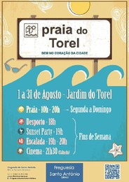 De acesso gratuito, a Praia do Torel abre diariamente a partir de 1 de Agosto e até 31 de Agosto das 10h às 20h. O jardim tem três acessos: porta principal na Rua Júlio de Andrade – próxima do Campo Mártires da Pátria ou Elevador do Lavra; porta na rua do Telhal (no seguimento da rua das Pretas) e acesso quase directo à praia pela Calçada do Moinho de Vento.